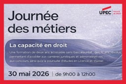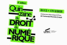 - Quatrième édition de la Quinzaine du droit du numérique : quand droit et technologie se rencontrent1 décembre 2025 - 17 décembre 2025La Quinzaine du droit du numérique revient pour sa 4ᵉ édition, du 1er au 17 décembre 2025, à la faculté de droit de l’Université Paris-Est Créteil.